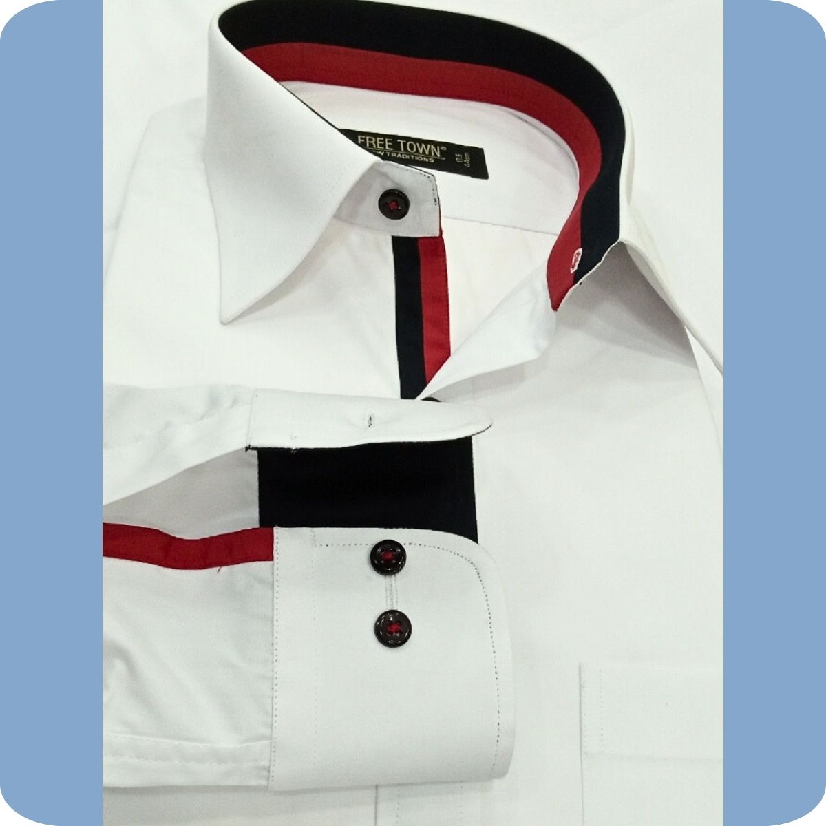 AT EXCLUSIVES CUSTOM -TAILORED DESIGNER SHIRT ,METICULOUSLY CRAFTED FROM SUPER FINE COTTON 100% OR COTTON RICH FABTIC, FOR A SMOOTH & BREATHABLE FEEL ,DESIGNED TO PROVIDE EXCEPTIONAL COMFORT & CONFIDENCE.